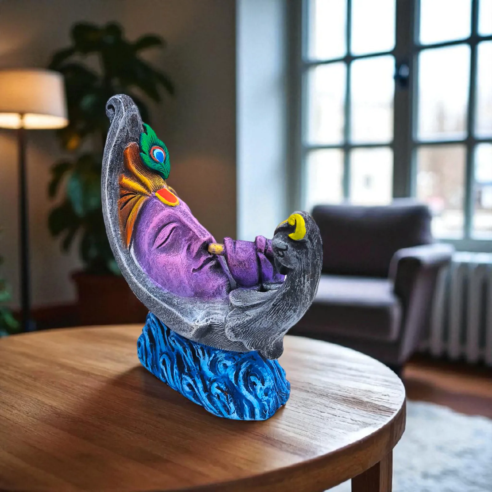 Handmade Burnt Clay Krishna Face Decorative Statue with Peacock Feather