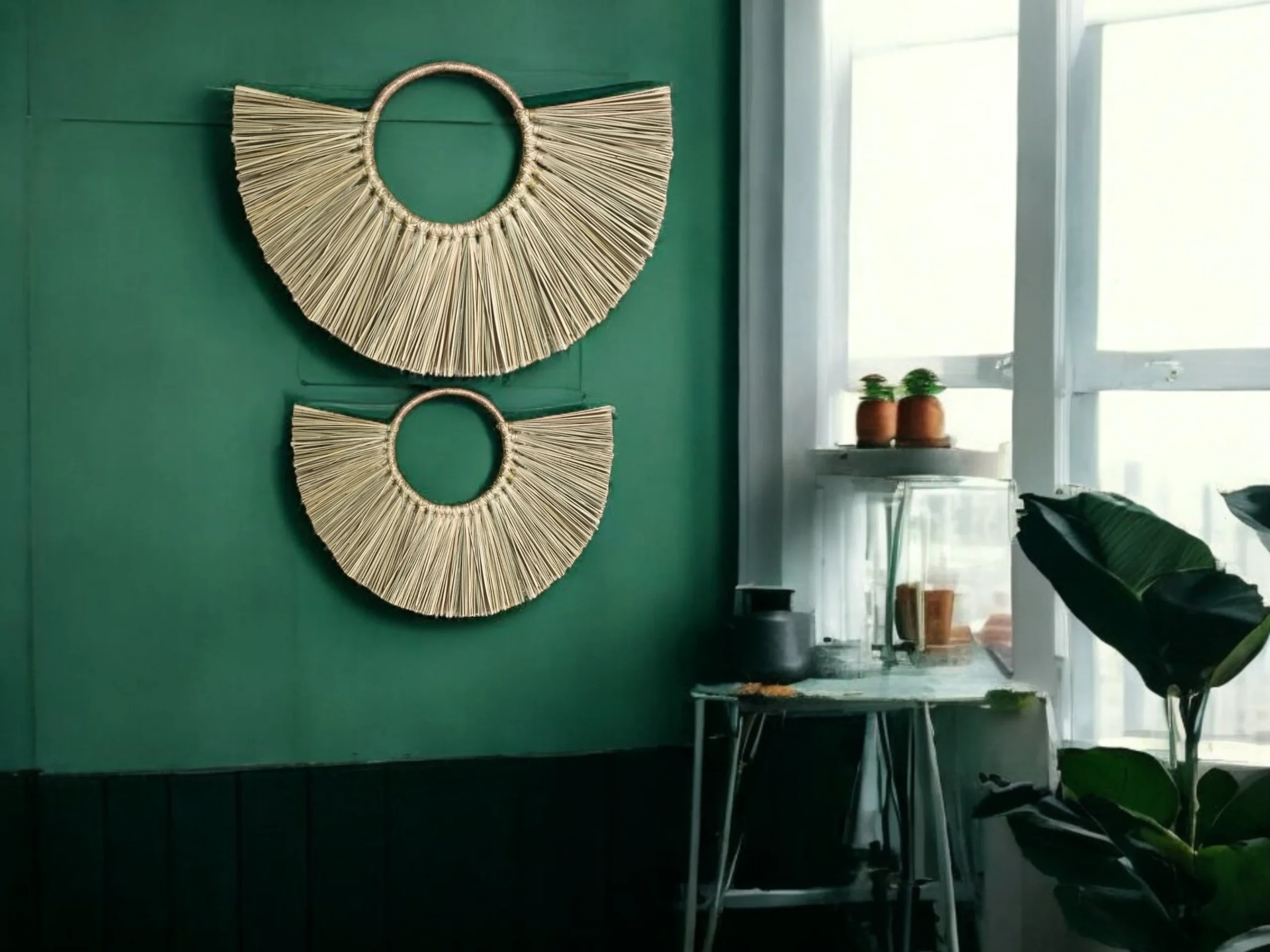 Handmade Half-Moon Wall Hanging – Natural Grass Decor for Boho Homes