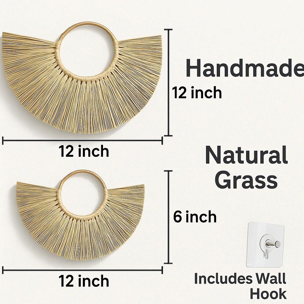 Add a touch of earthy elegance to your interiors with this Handmade Half-Moon Wall Hanging, beautifully crafted from natural grass. Designed to bring warmth, texture, and a bohemian vibe to any space, it’s perfect for living rooms, bedrooms, or cozy corners.