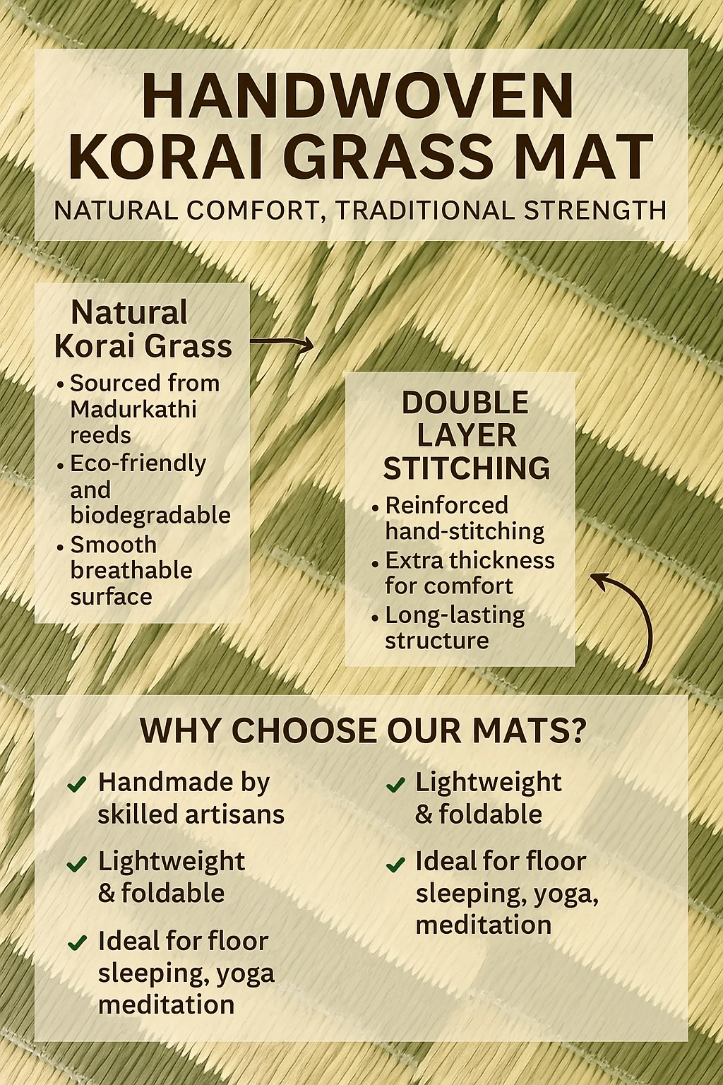 ✅ 100% Handwoven from natural Korai grass (Madurkathi)