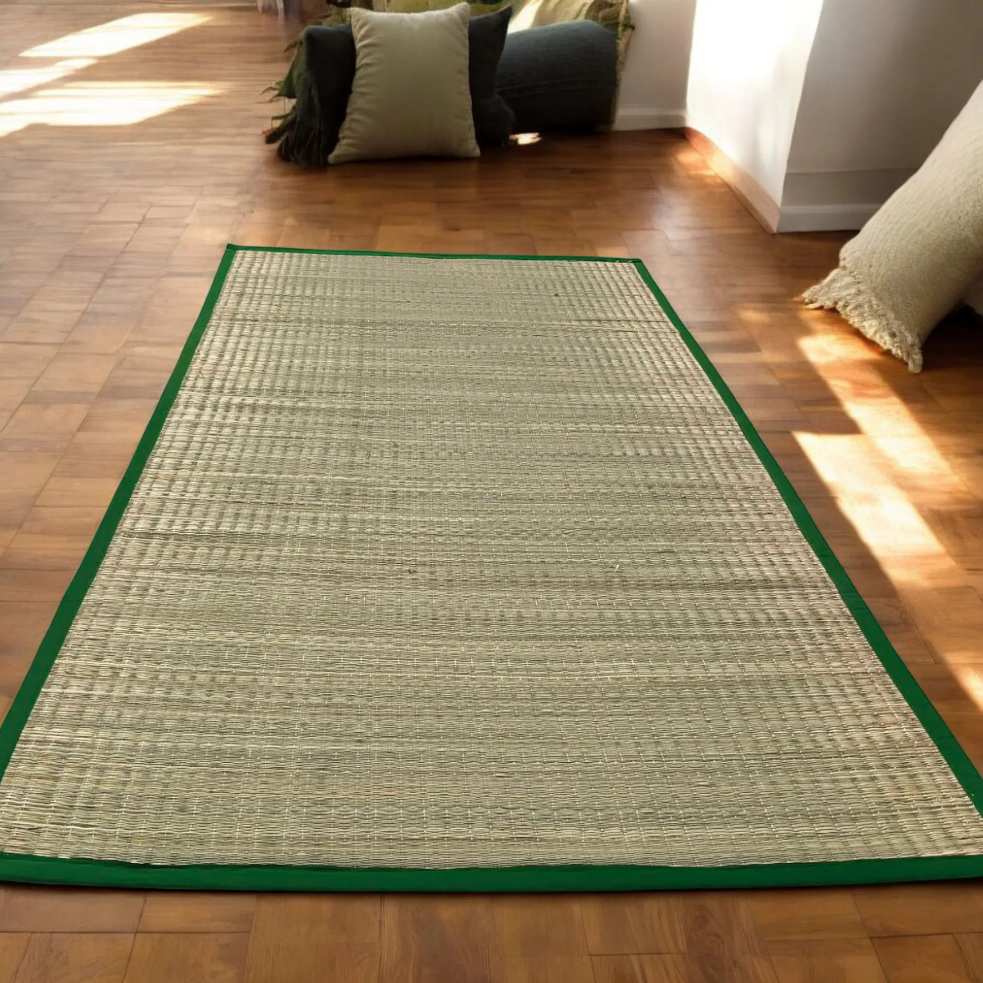Handwoven Natural River Grass Floor Mat with Green Border – Eco-Friendly Carpet for Home