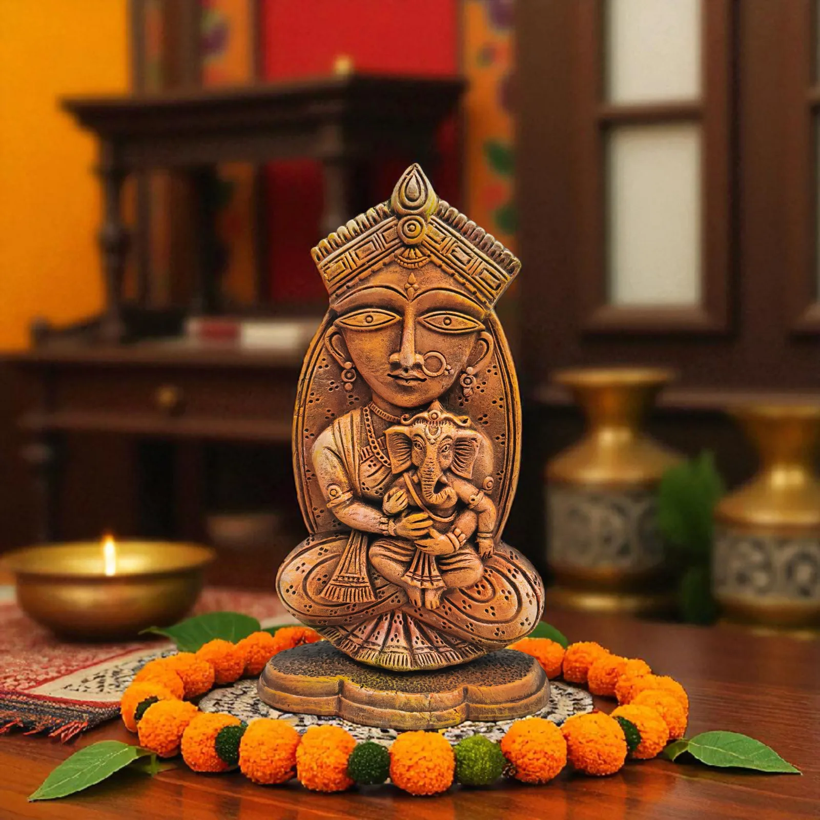 Perfect for home temples, meditation spaces, festive décor, or as a collector’s item, this terracotta idol adds spiritual charm and timeless artistry to your surroundings. It also makes a thoughtful gift during festivals like Durga Puja, Navratri, and Diwali, or for housewarmings and special occasions.